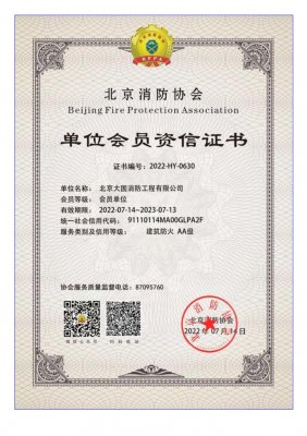 北京消防協(xié)會 單位會員資質(zhì)證書
